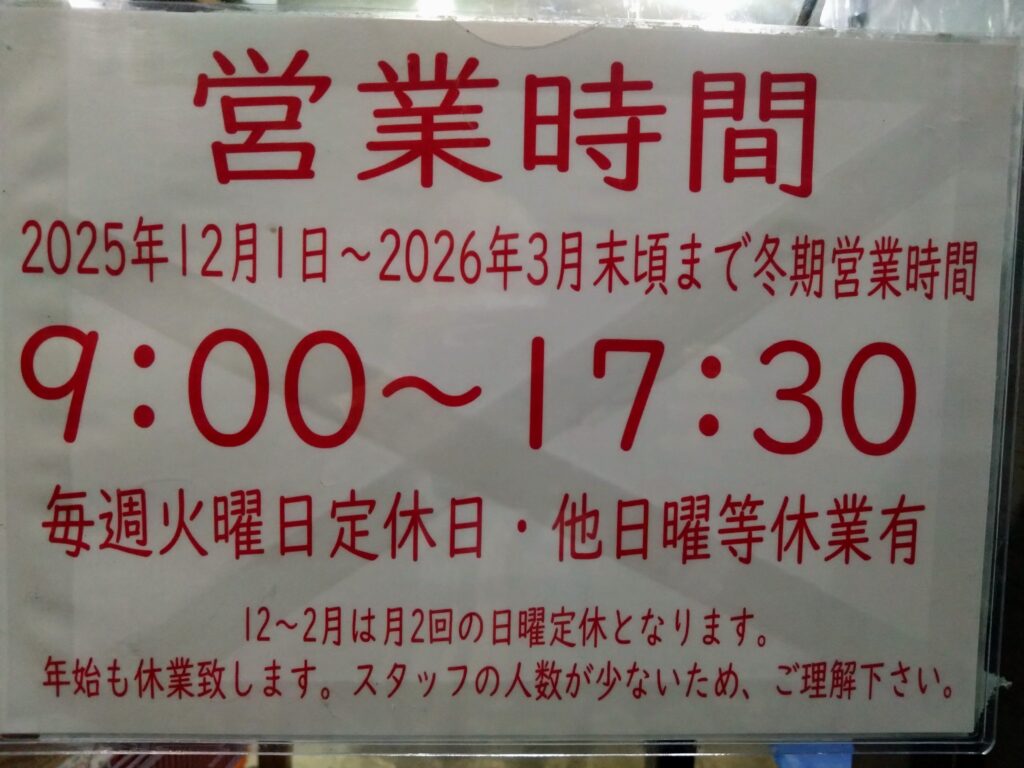 12月〜来年3月まで冬期営業時間となります。又、表のチャボ小屋も寒さ対策として早目に閉めさせて頂きます。